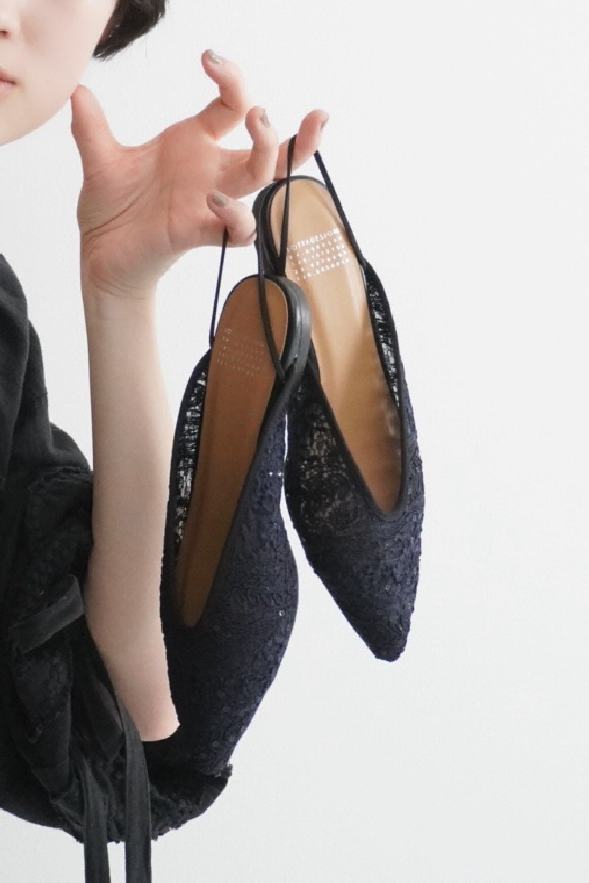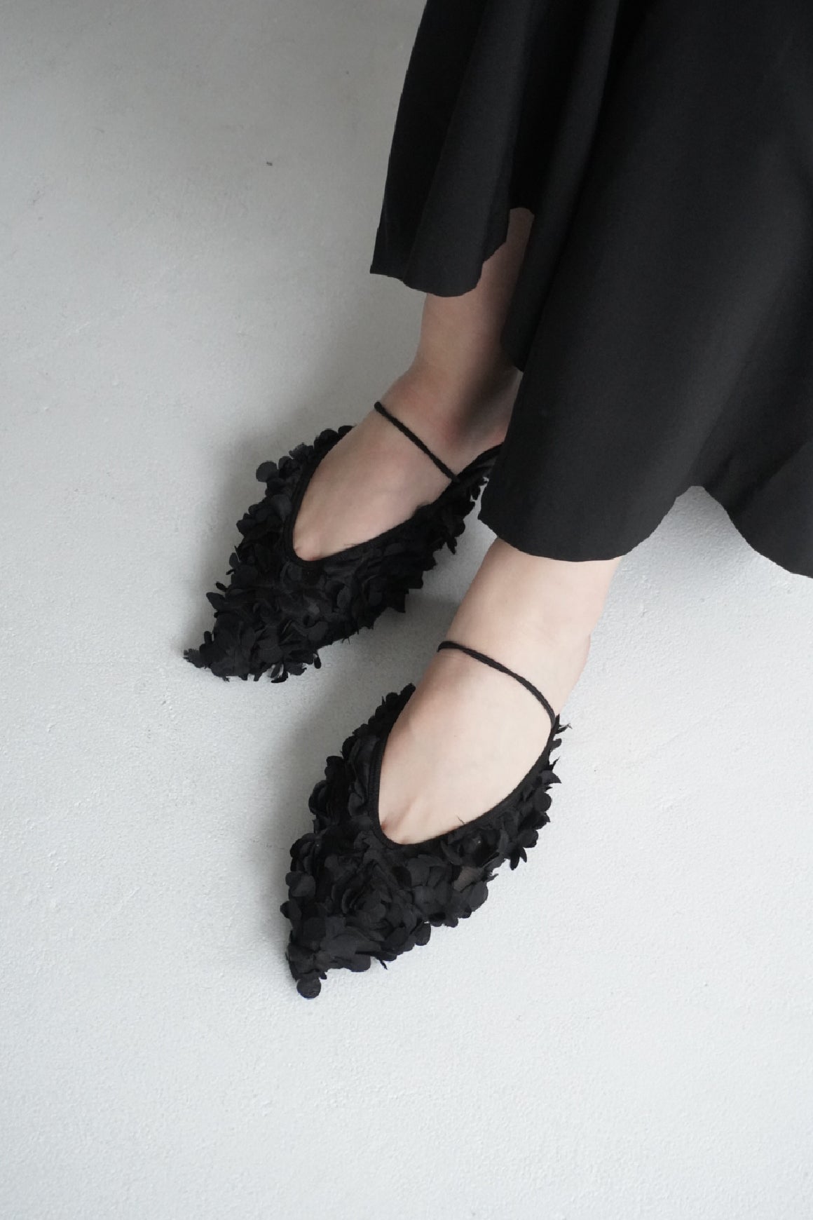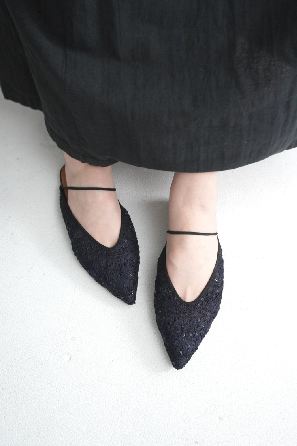 繊細な表情をまとった、ポインテッドトゥのゴムストラップシューズ LIAN
