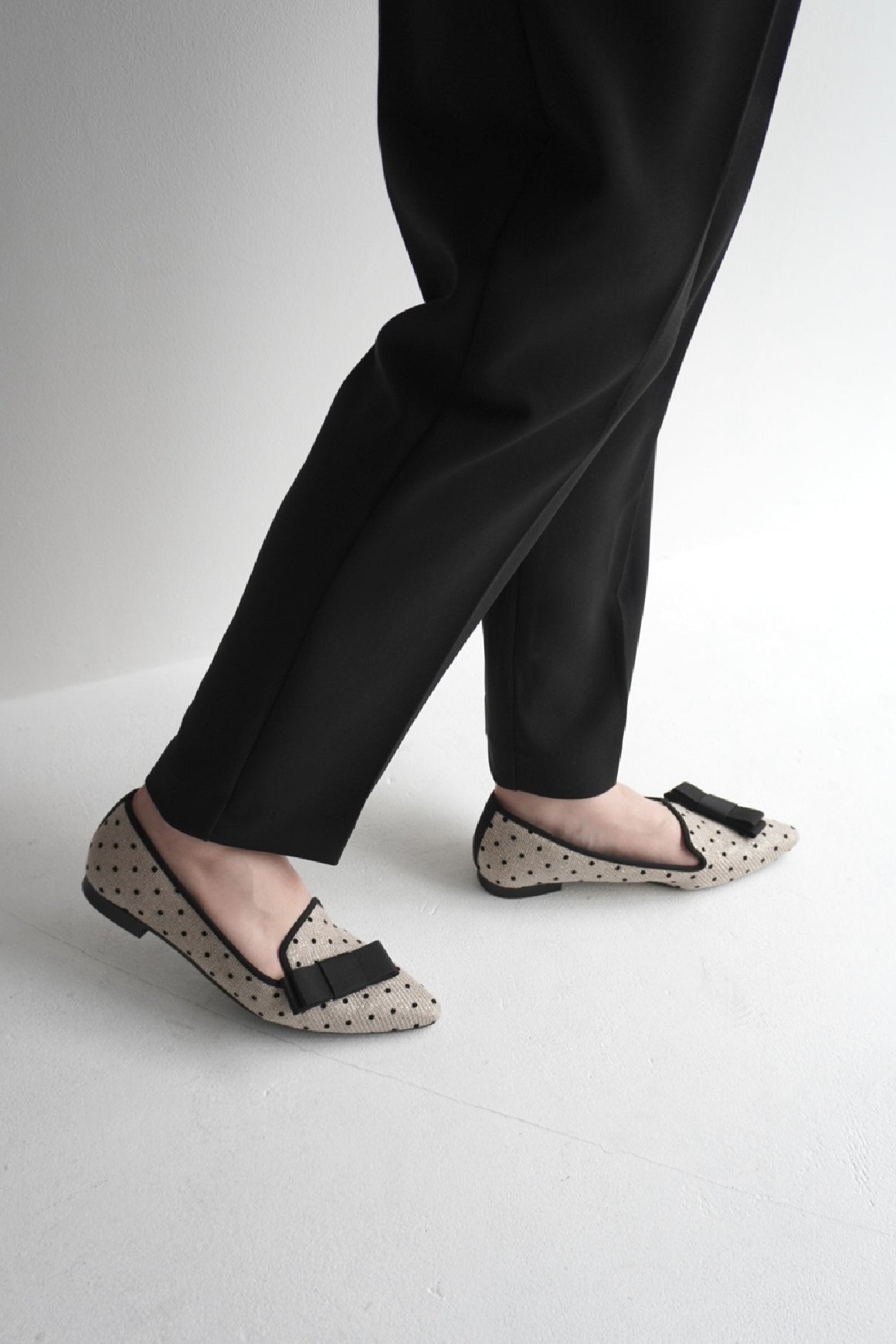 神戸・長田の熟練職人による手仕事。美しいシルエットを保ちつつ、フラットシューズに欠かせない「歩きやすさ」を追求しました。