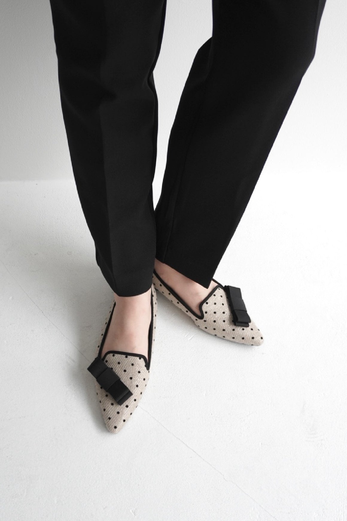 | MASAMI | 23.0cm / 幅広 | 23.0cmを選択。リボンがアクセントになり、幅広の足もすっきり綺麗に見えます。 |