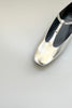 Square toe T-strap flat shoes. We paid particular attention to the balance of the instep so that they can be worn all year round. The modest silver ring adds a subtle accent and can be worn in any situation.